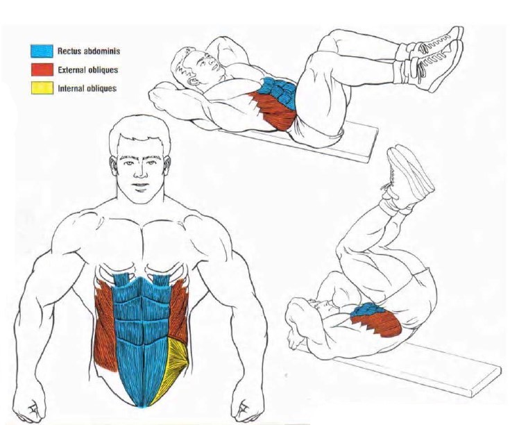 Rectus Abdominis, External Obliques, Internal Obliques.