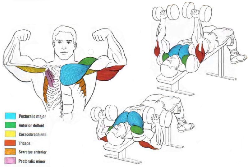 – Aducerea ganterelor împreună în partea de sus provoacă o concentrare și mai puternică a pectoralilor interiori. Ținându-le mai larg depărtate, stresează mai mult umerii și părțile exterioare ale mușchilor pectorali.