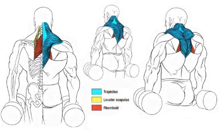-Cu cât ridicați umerii mai sus, cu atât mai mare este scurtarea lui trapezius superior și a lui levator scapulae, ceea ce va produce o masă musculară mai mare.