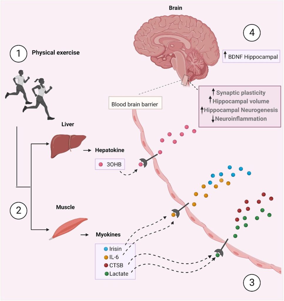 Exercițiul fizic crește, de asemenea, nivelurile factorului neurotrofic derivat din creier, o proteină care susține supraviețuirea și creșterea neuronilor și promovează mielinizarea. Exercițiul reduce degradarea mielinei prin diminuarea inflamației și îmbunătățește funcția metabolică cerebrală, despre care se știe că joacă un rol în mai multe boli neurodegenerative.